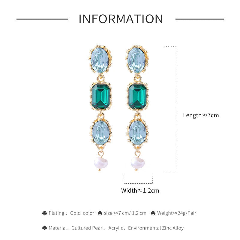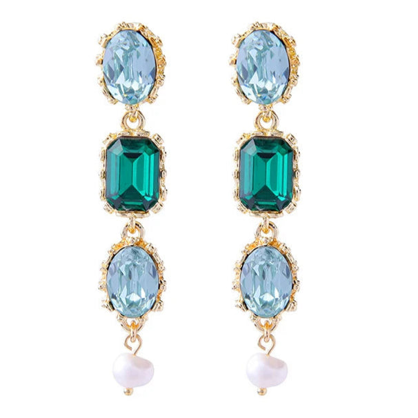 Brincos Luxuosos de Cristal Oval Azul e Verde