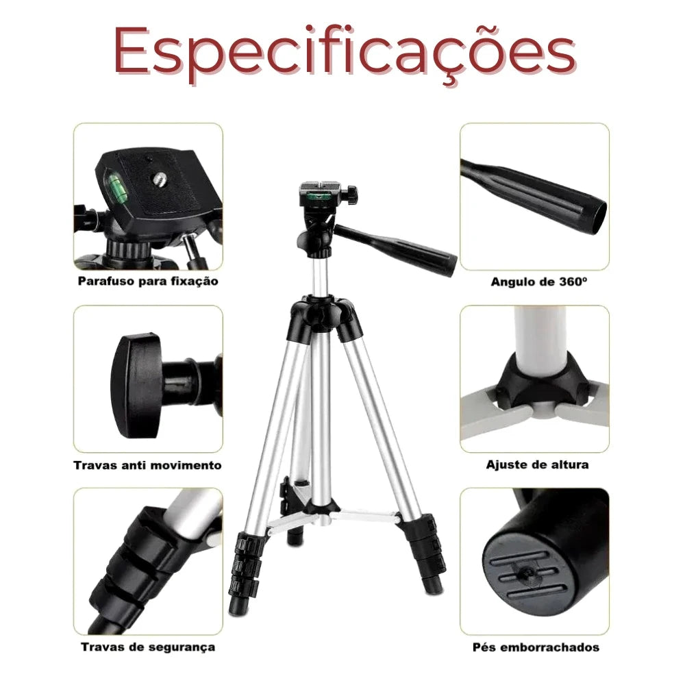 A sua estrutura telescópica e ajustável permite que você altere a altura de forma rápida e precisa, adaptando-se a diferentes ângulos de visão e terrenos. Feito com materiais de alta qualidade, o tripé é leve e portátil, facilitando o transporte para sessões externas, viagens ou eventos. Além disso, a sua cabeça giratória oferece movimentos suaves para capturar a tomada perfeita em 360 graus.