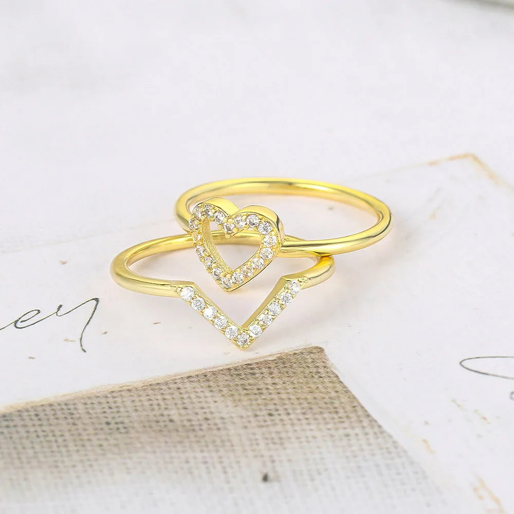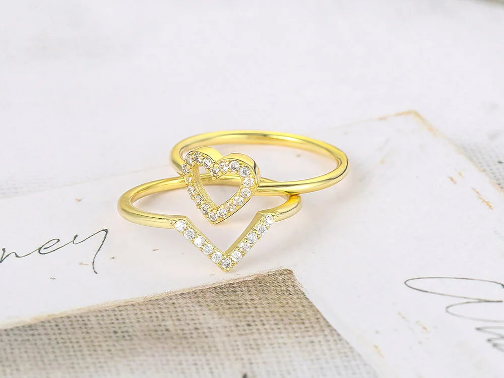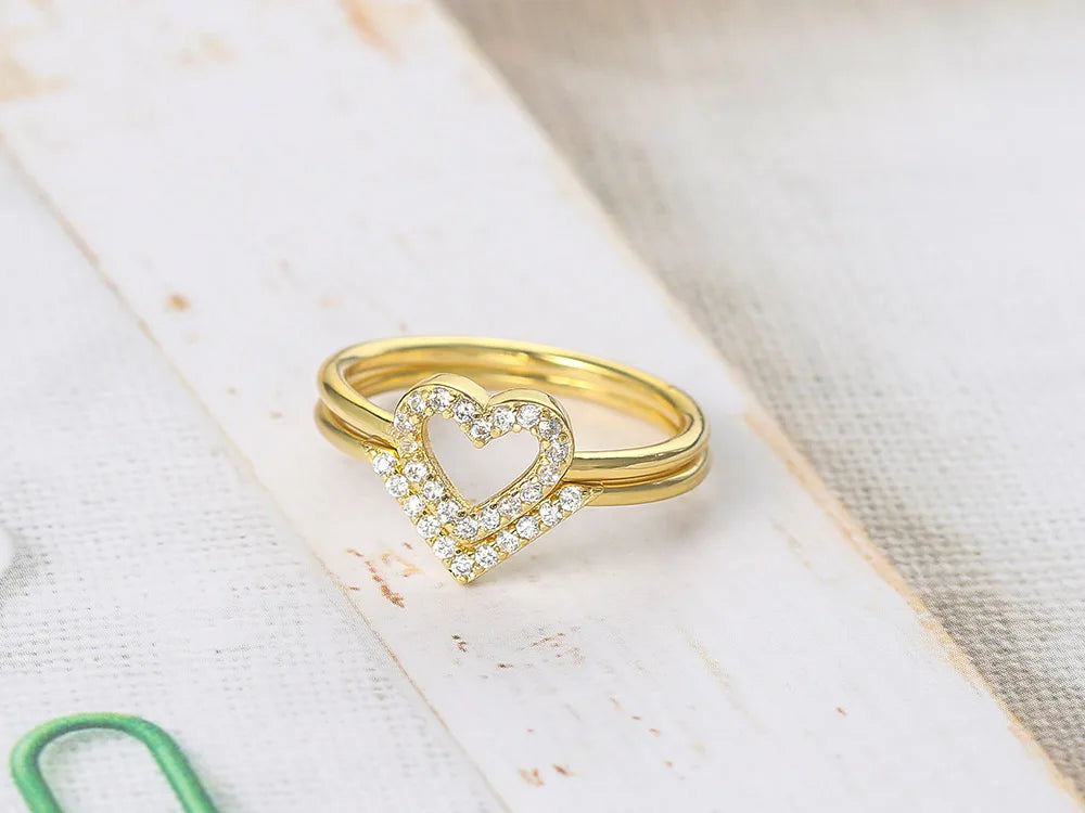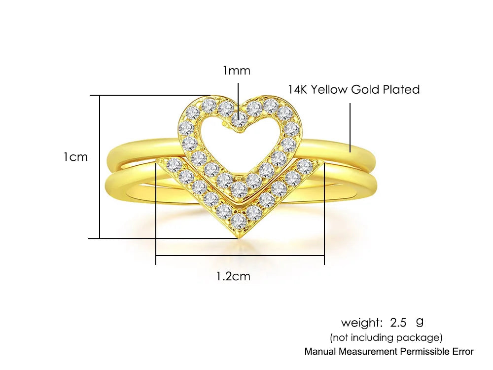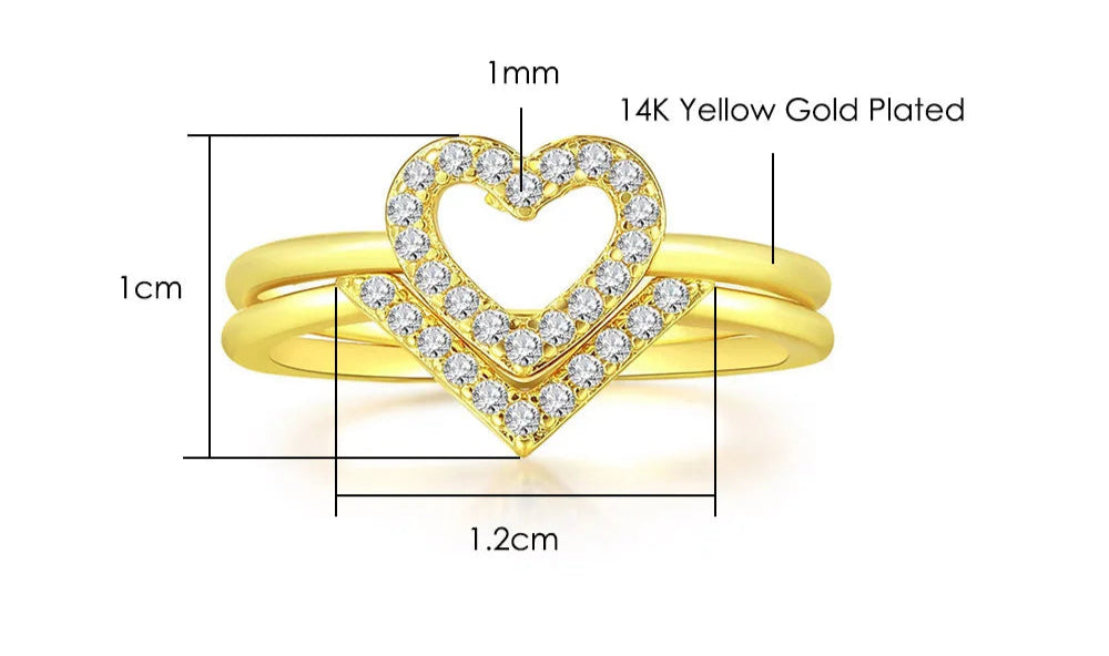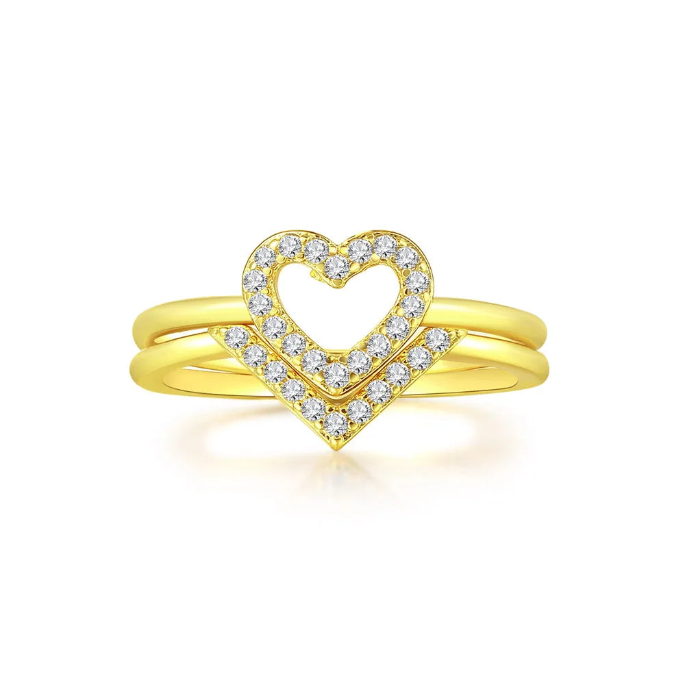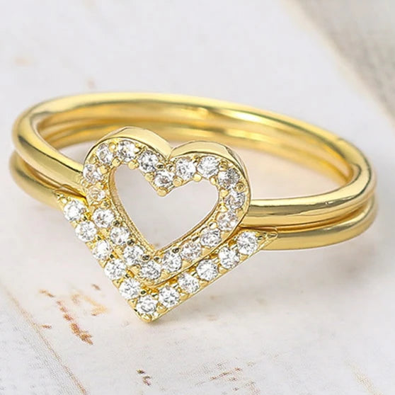 Conjunto de Anéis de Noiva com Coração em Zircônia Dourada