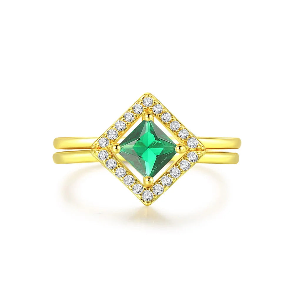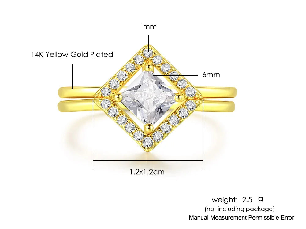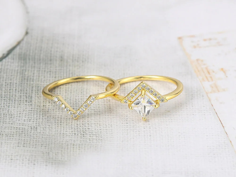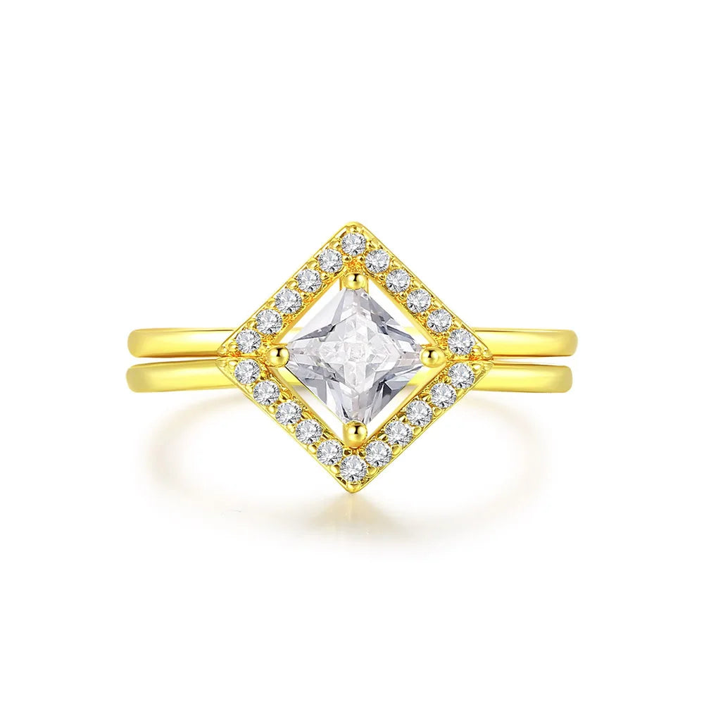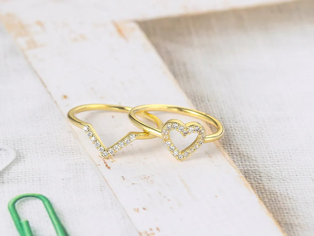 Conjunto de Anéis de Noiva com Coração em Zircônia Dourada