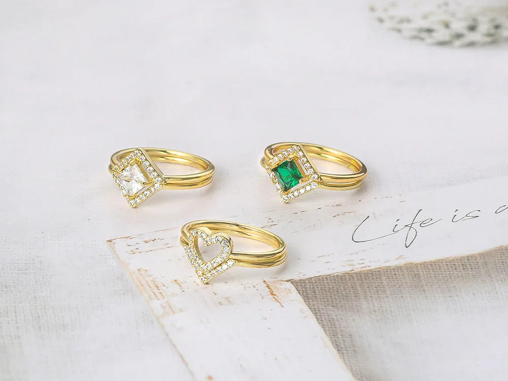 - Design Romântico: Anéis com formato de coração e detalhes em zircônia que irradiam brilho e sofisticação.